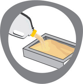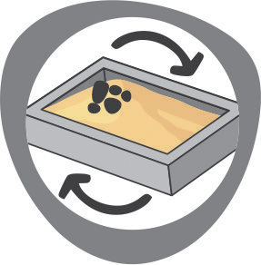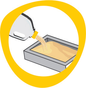 Coloque el producto en una bandeja sanitaria con al menos 6 cm. de altura y acomódelo de manera uniforme. La orina y las heces se absorben rápidamente, formando bloques de arena.